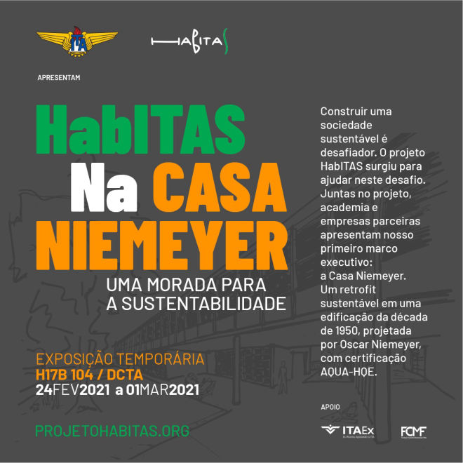Com público seletivo, Projeto HabITAS abre a mostra sobre a Casa Niemeyer, no dia 24FEV2021. A exibição seguirá protocolos de segurança da COVID-19 e vai até o dia 01MAR2021. Veja mais no Facebook do projeto: https://www.facebook.com/projetohabitas